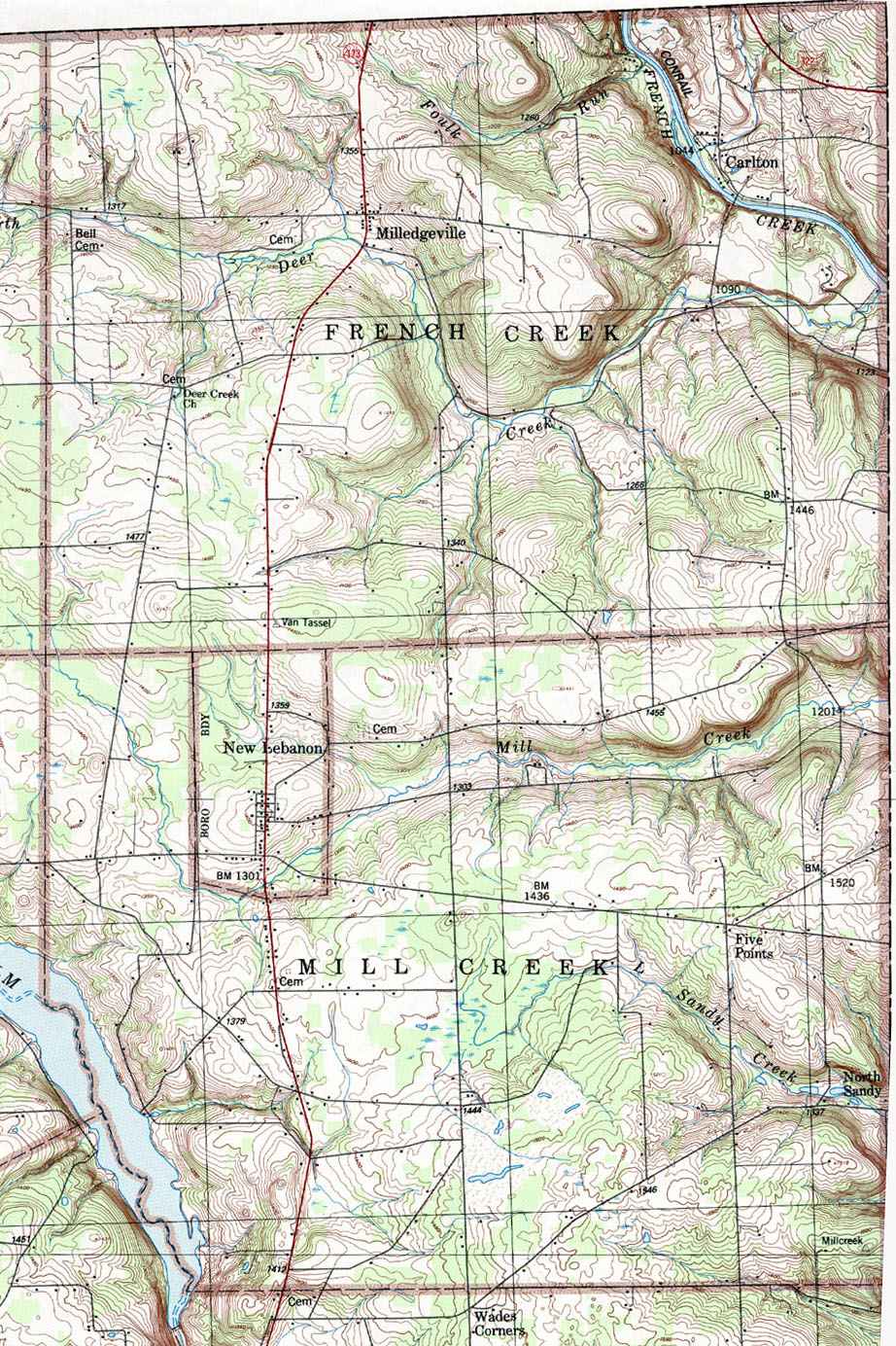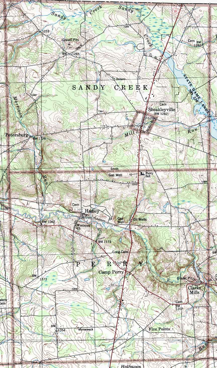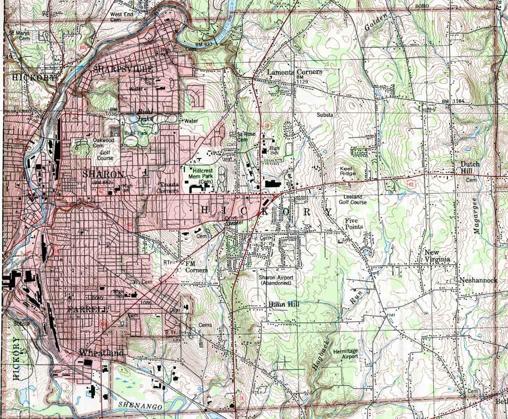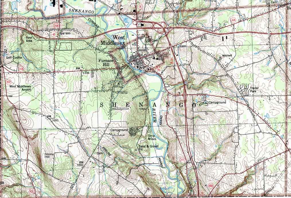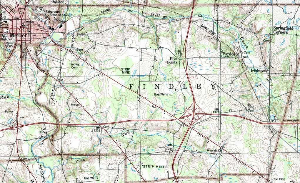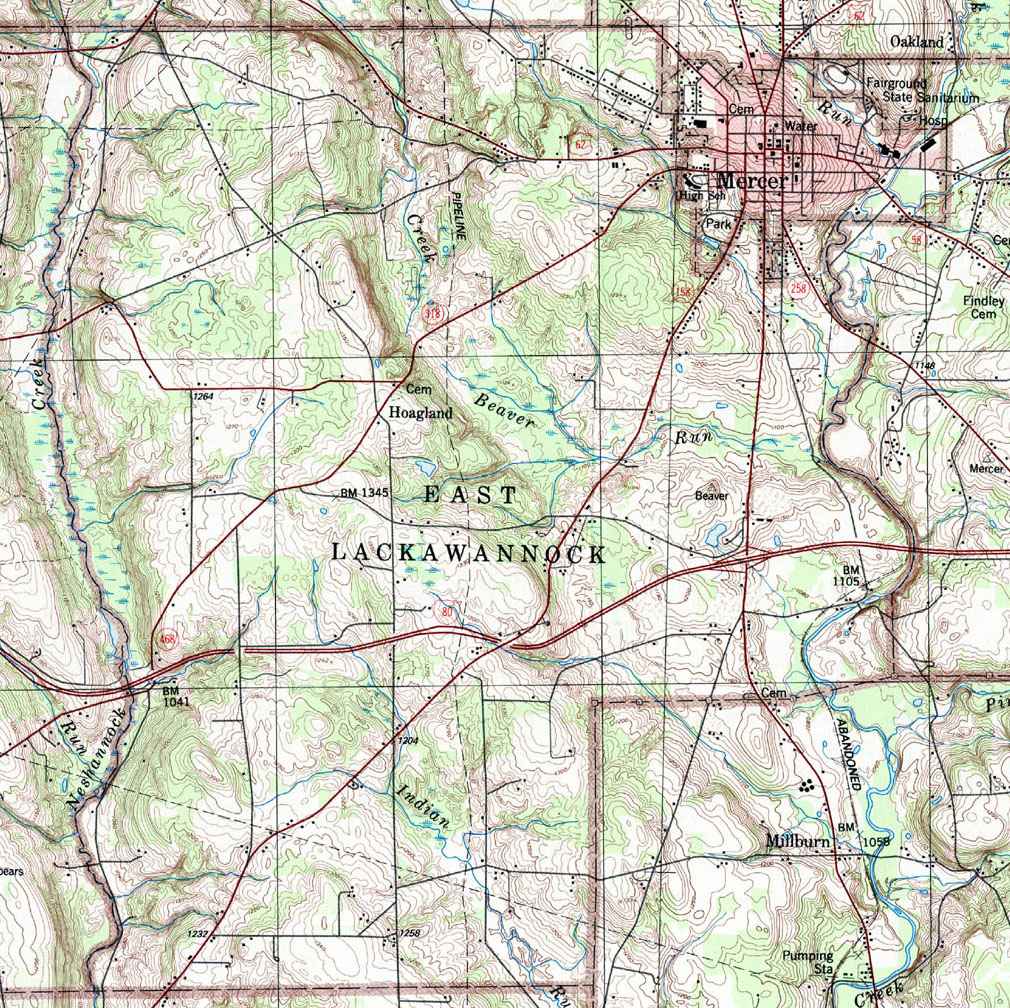 Image Map: This is a clickable image map of the townships in Mercer County Pennsylvania. The township images are cropped from a 1/50,000 US Geological Survey Map of Mercer County dated 1986. The 1/24,000 maps which are the basis of the county map are dated 1958 through 1962. The adjacent counties shown on the image map are links to their USGS maps. County Genealogy Sites: Link to Pennsylvania county USGenWeb sites at the bottom of the Pennsylvania Map Index page. |