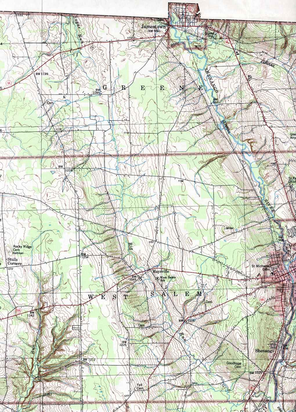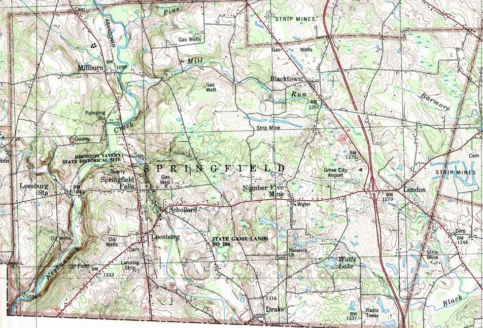 The list below shows boroughs and villages within each township; however, some townships may be combined in one map. To search for cemeteries, villages and other features visit the USGS GNIS site. Check here for information on how to order US Geological Survey Maps of Pennsylvania counties.