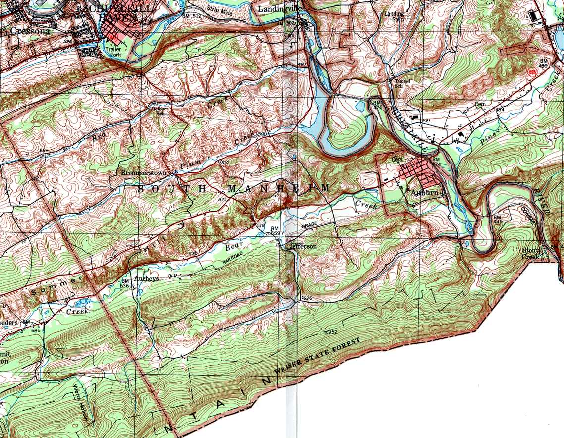 The list below shows boroughs and villages within each township; however, some townships may be combined in one map. To search for cemeteries, villages and other features visit the USGS GNIS site. Check here for information on how to order US Geological Survey Maps of Pennsylvania counties.