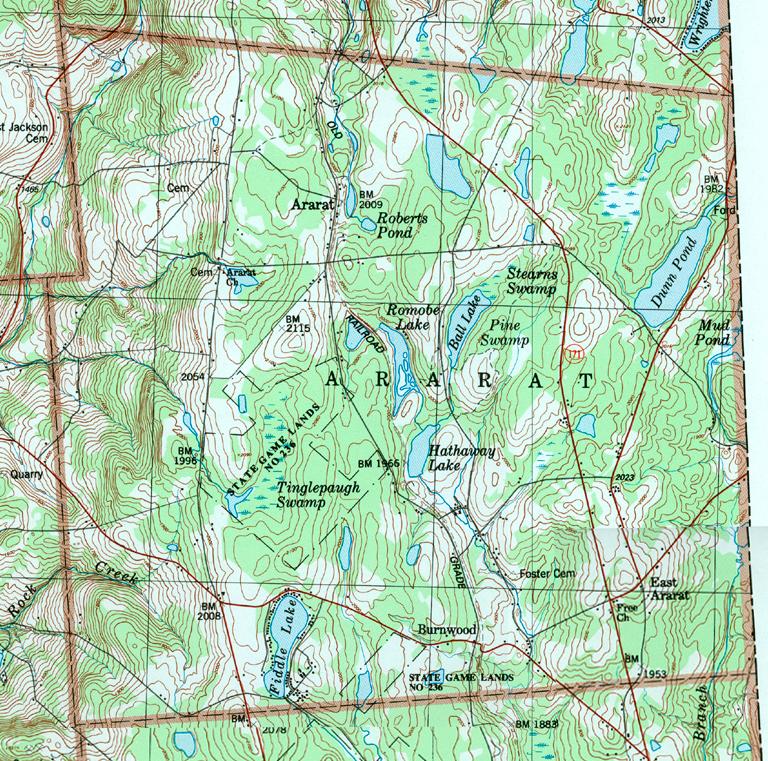 The list below shows boroughs and villages within each township; however, some townships may be combined in one map. To search for cemeteries, villages and other features visit the USGS GNIS site. Check here for information on how to order US Geological Survey Maps of Pennsylvania counties.