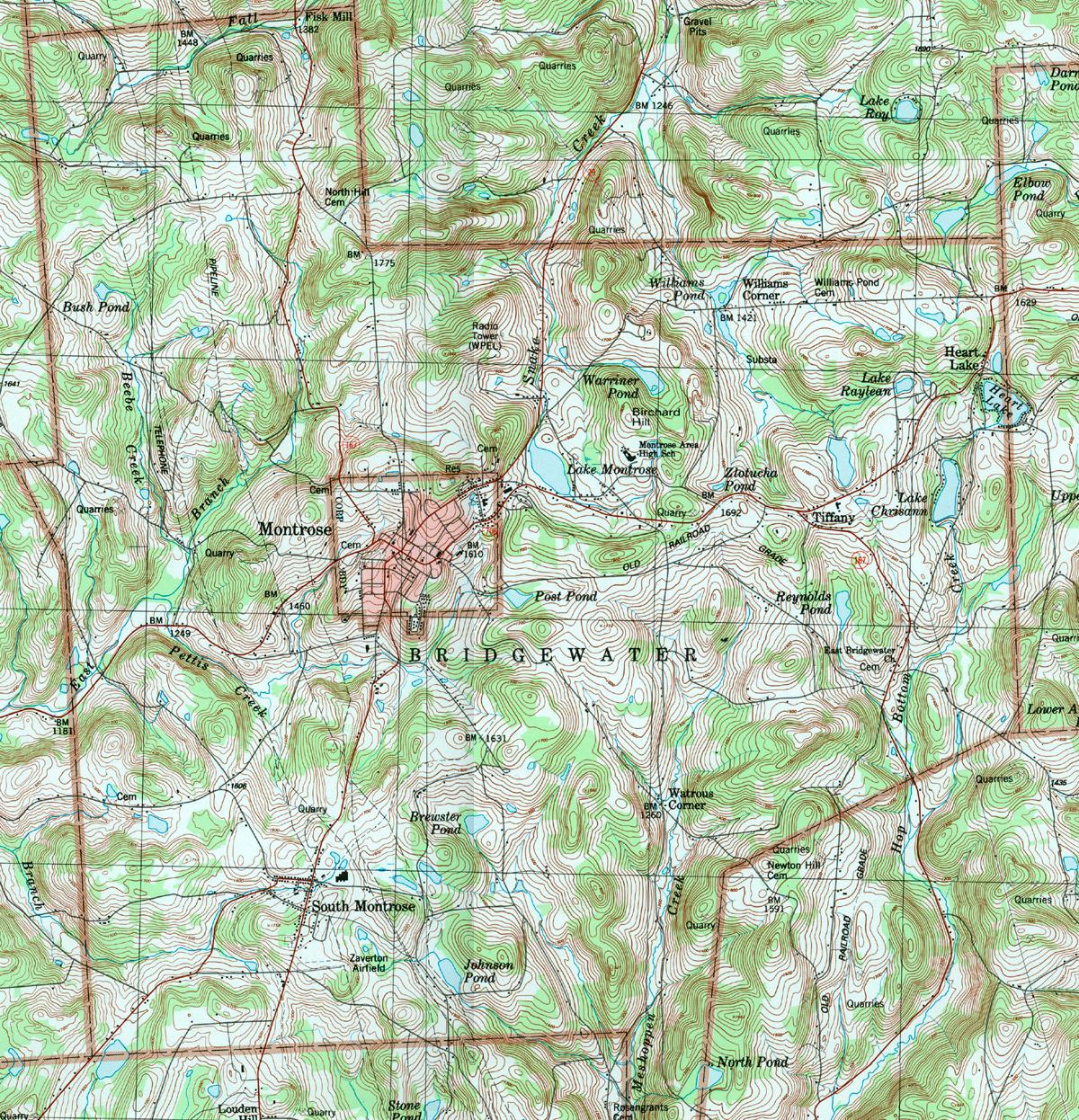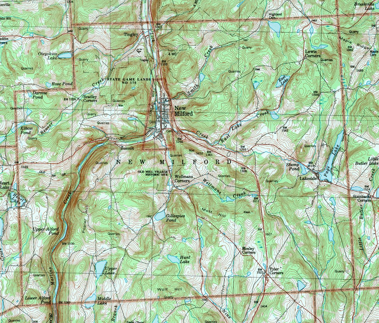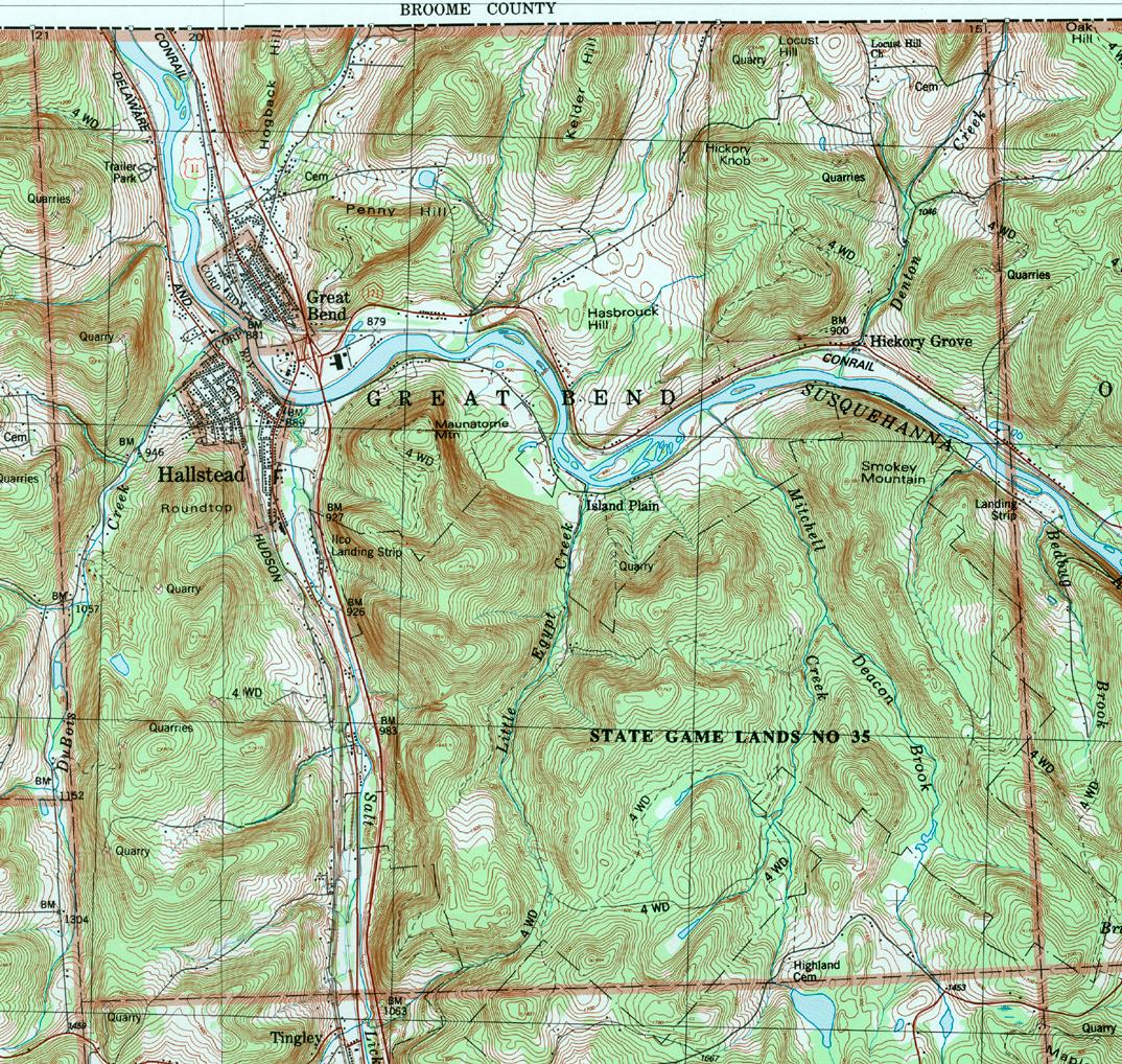 Image Map: This is a clickable image map of townships and boroughs in Susquehanna County Pennsylvania. A text list of the township maps is shown below. The township images are cropped from a 1/50,000 USGS Geological Survey Map of Susquehanna County dated 1987; based on 1/24,000 maps dated 1945 (69PR) through 1968. Adjacent counties shown on the image map have active links to their USGS maps. County Genealogy Sites: There are links to Pennsylvania county USGenWeb sites at the bottom of the Pennsylvania Map Index page. To see the whole county map click here (4.3MB). |