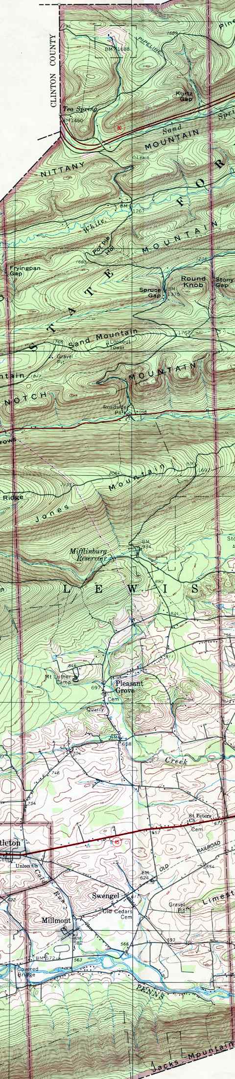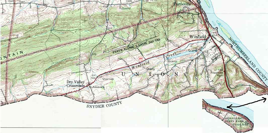 Image Map: This is a clickable image map of townships and boroughs in Union County Pennsylvania. A text list of the township maps is shown below. The township images are cropped from a 1/50,000 USGS Geological Survey Map of Union County dated 1993; based on 1/24,000 maps dated 1965 through 1968. The adjacent counties shown on the image map are links to their USGS maps. County Genealogy Sites: Link to Pennsylvania county USGenWeb sites at the bottom of the Pennsylvania Map Index page. |