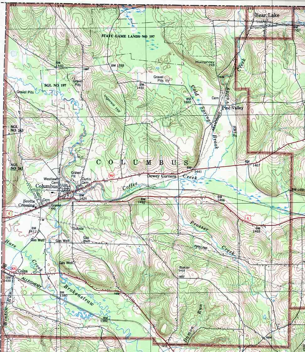- Columbus, Baker Hill, Bear Lake, Columbus, Dewey Corners, Humphrey Hill, Pine Valley, Scotts Crossing