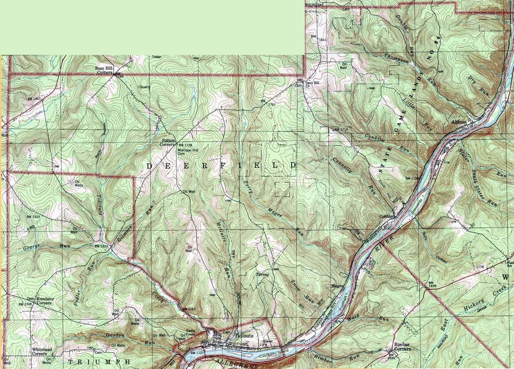 - Deerfield, Althom, Cobham, Davy Hill, Magee, Sutton Corners, Tidioute,