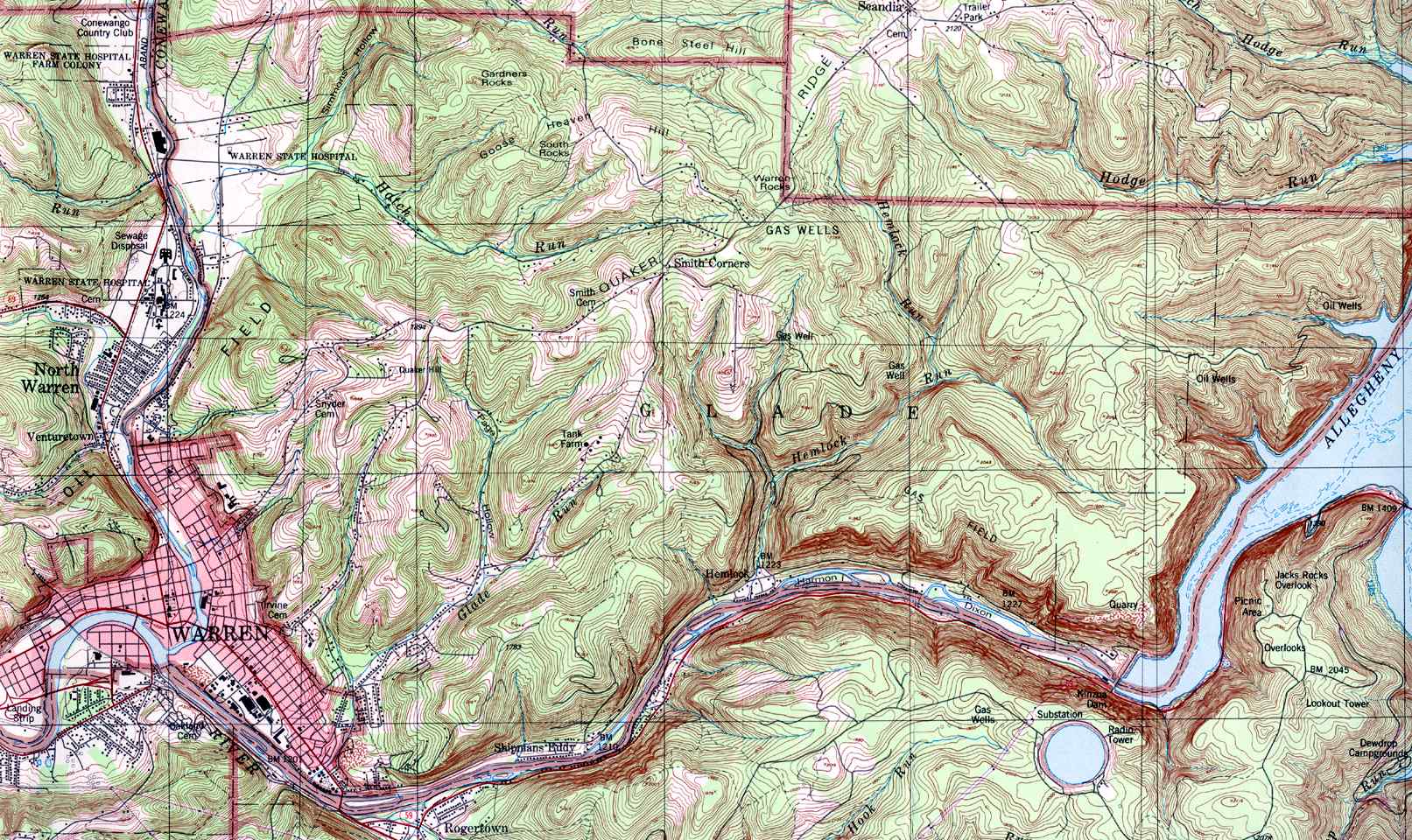 - Glade, Gardners Rocks, Hemlock, Quaker Hill, Shipmans Eddy, Smith Corners, Warren