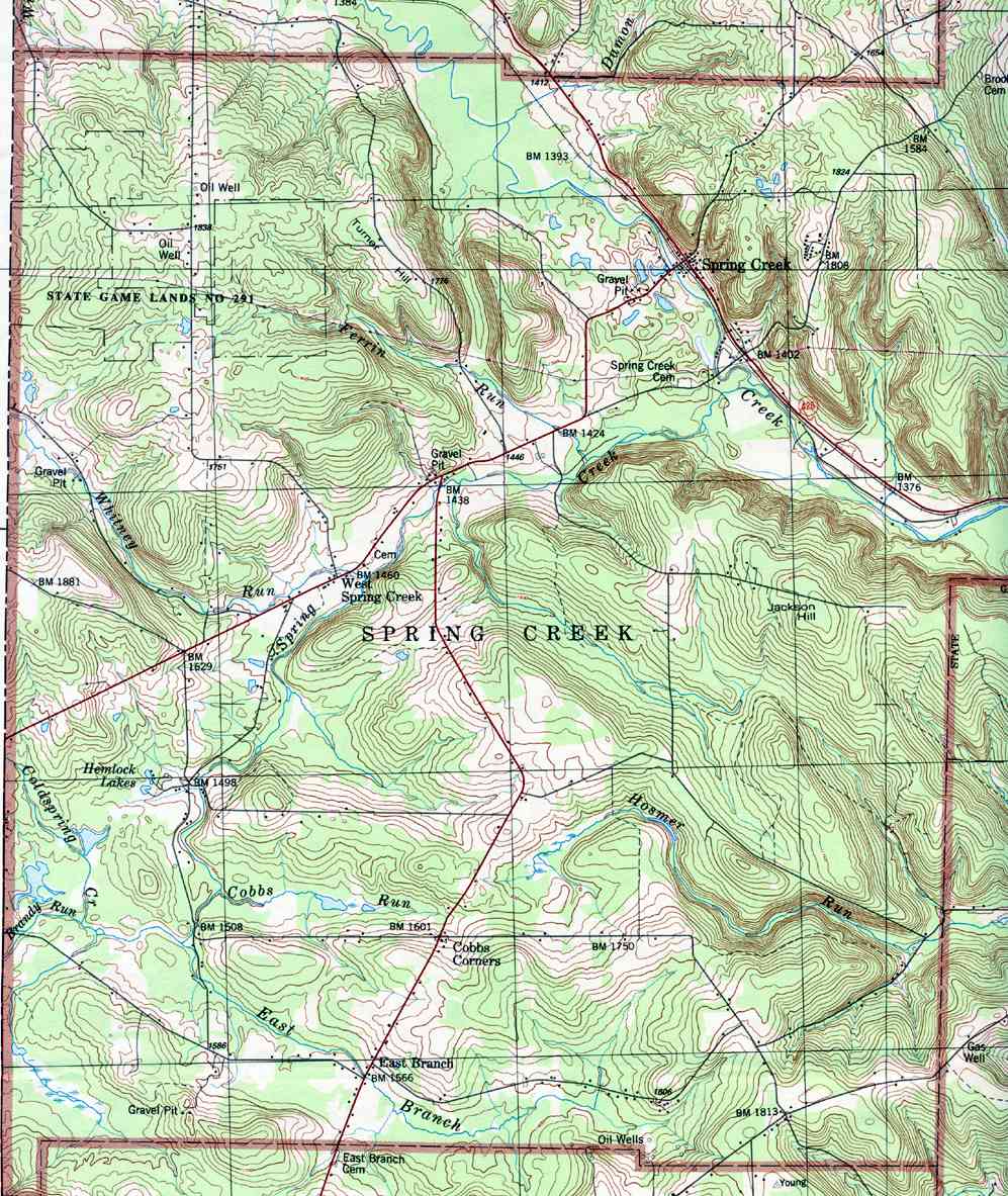 - Spring Creek, Cobbs Corners, East Branch, Horn Siding, Jackson Hill, Spring Creek, Turner Hill, West Spring Creek