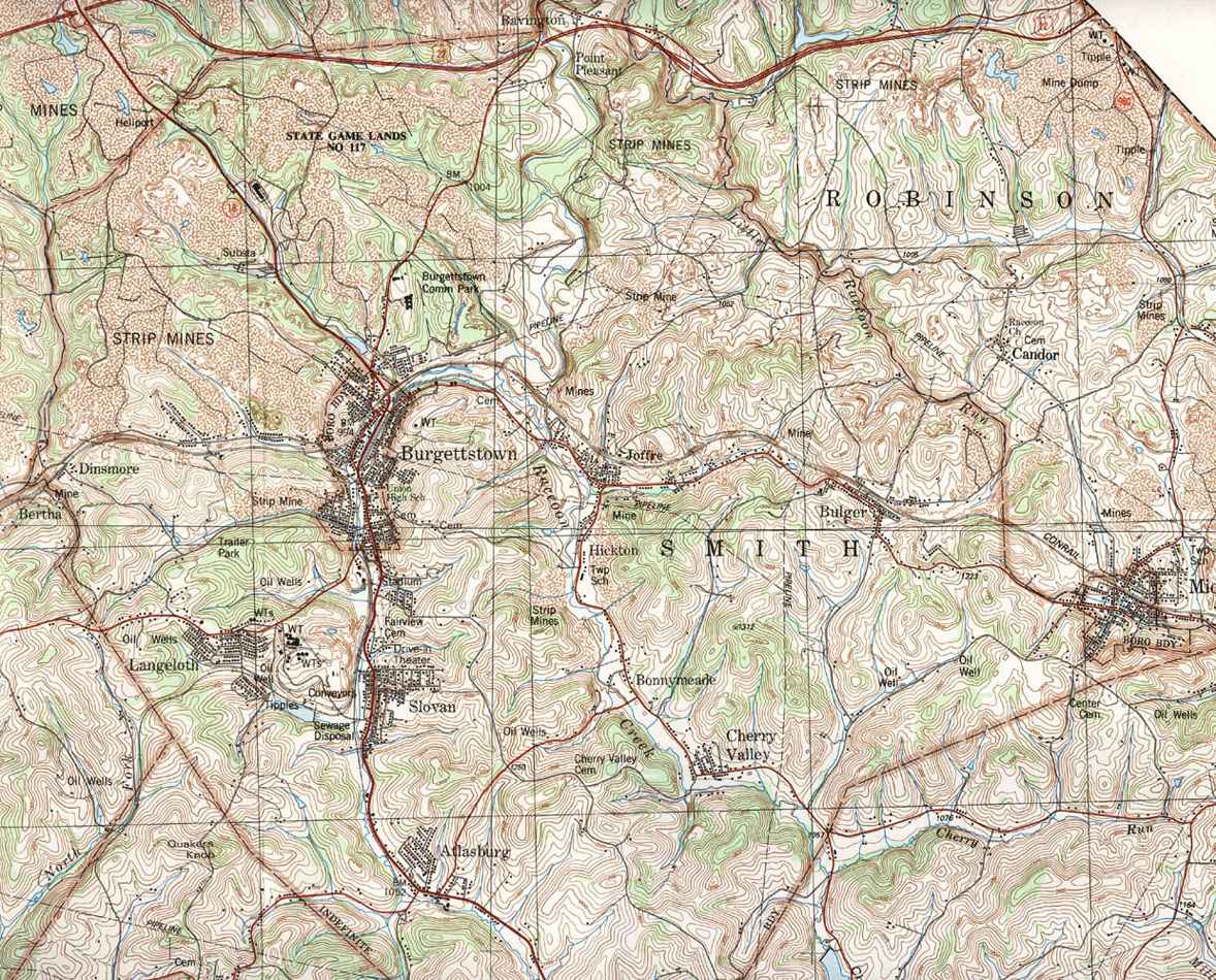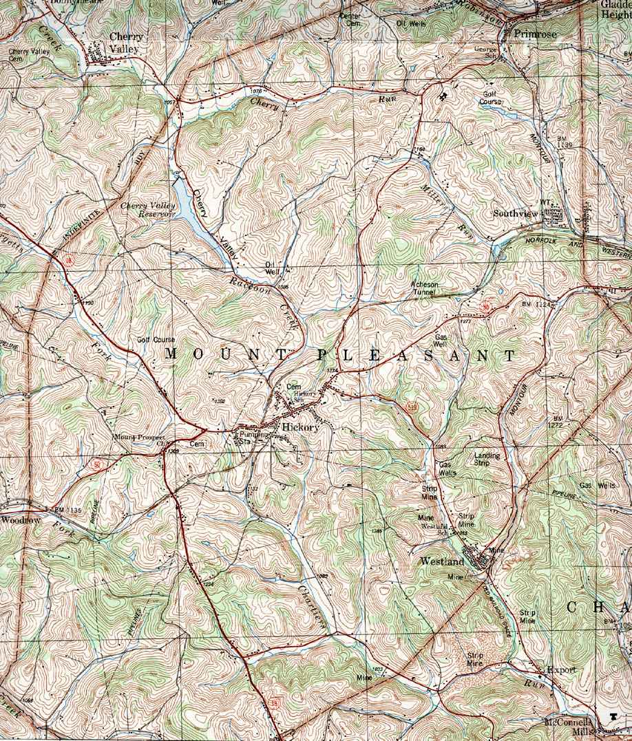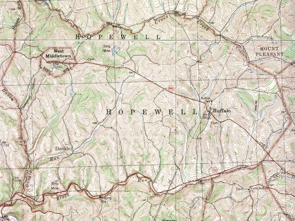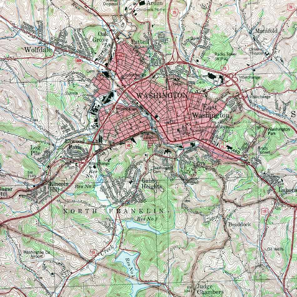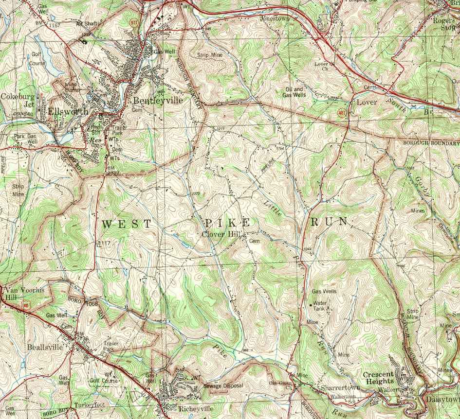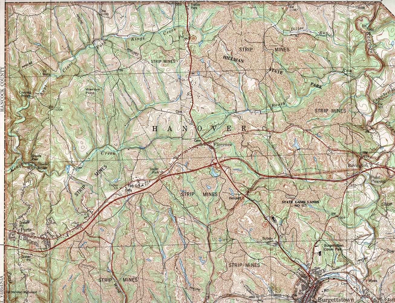 Image Map: Click on the map or on the name of the township or borough shown below. The township maps are cropped from a 1/50,000 US Geological Survey Topographical Map of Washington County dated 1982. The 1/24,000 maps which are the basis of the county map are dated from 1953 to 1964. The adjacent counties shown on the image map are links to their USGS maps. County Genealogy Sites: Link to Pennsylvania county USGenWeb sites at the bottom of the Pennsylvania Map Index page. |