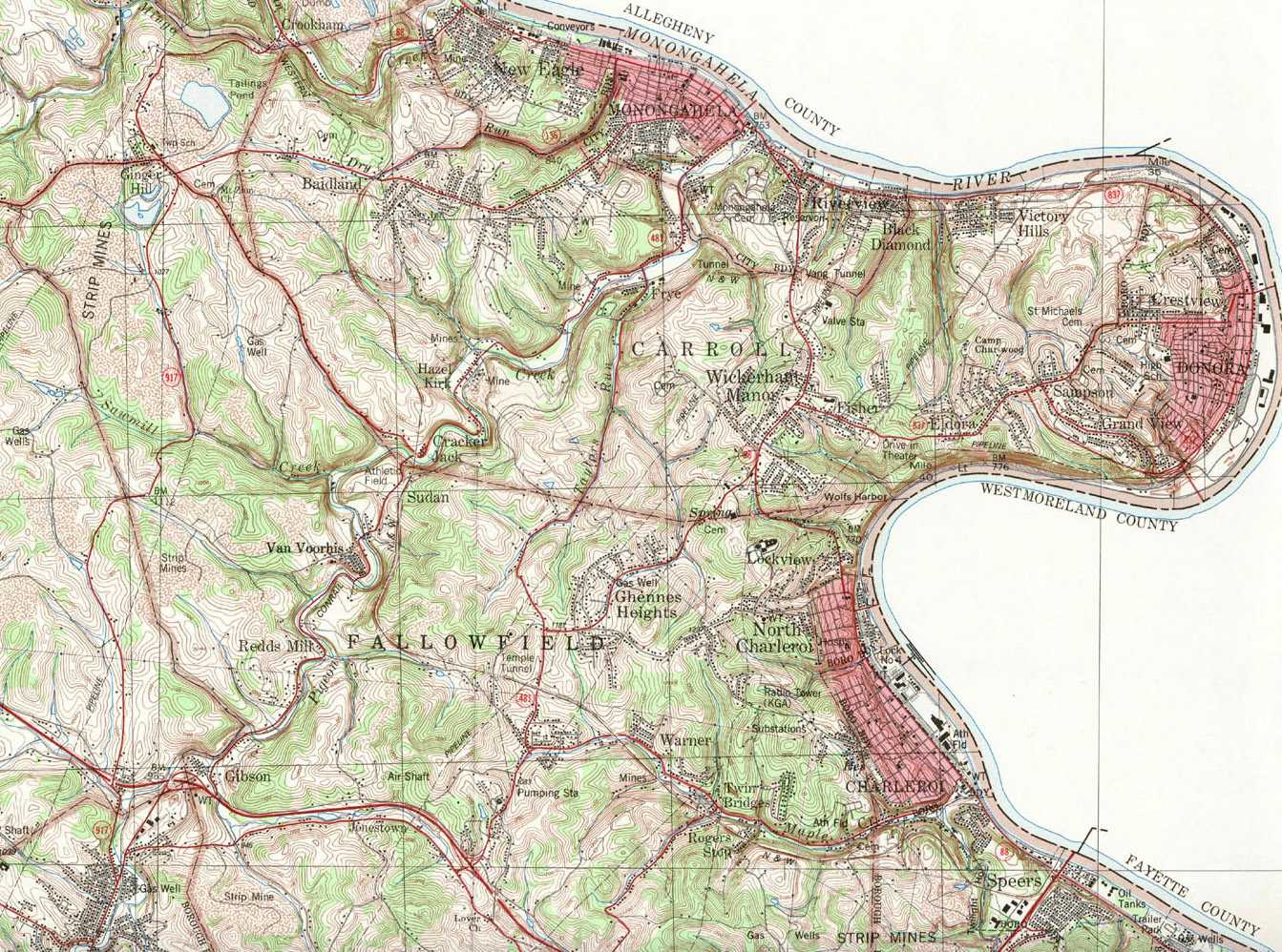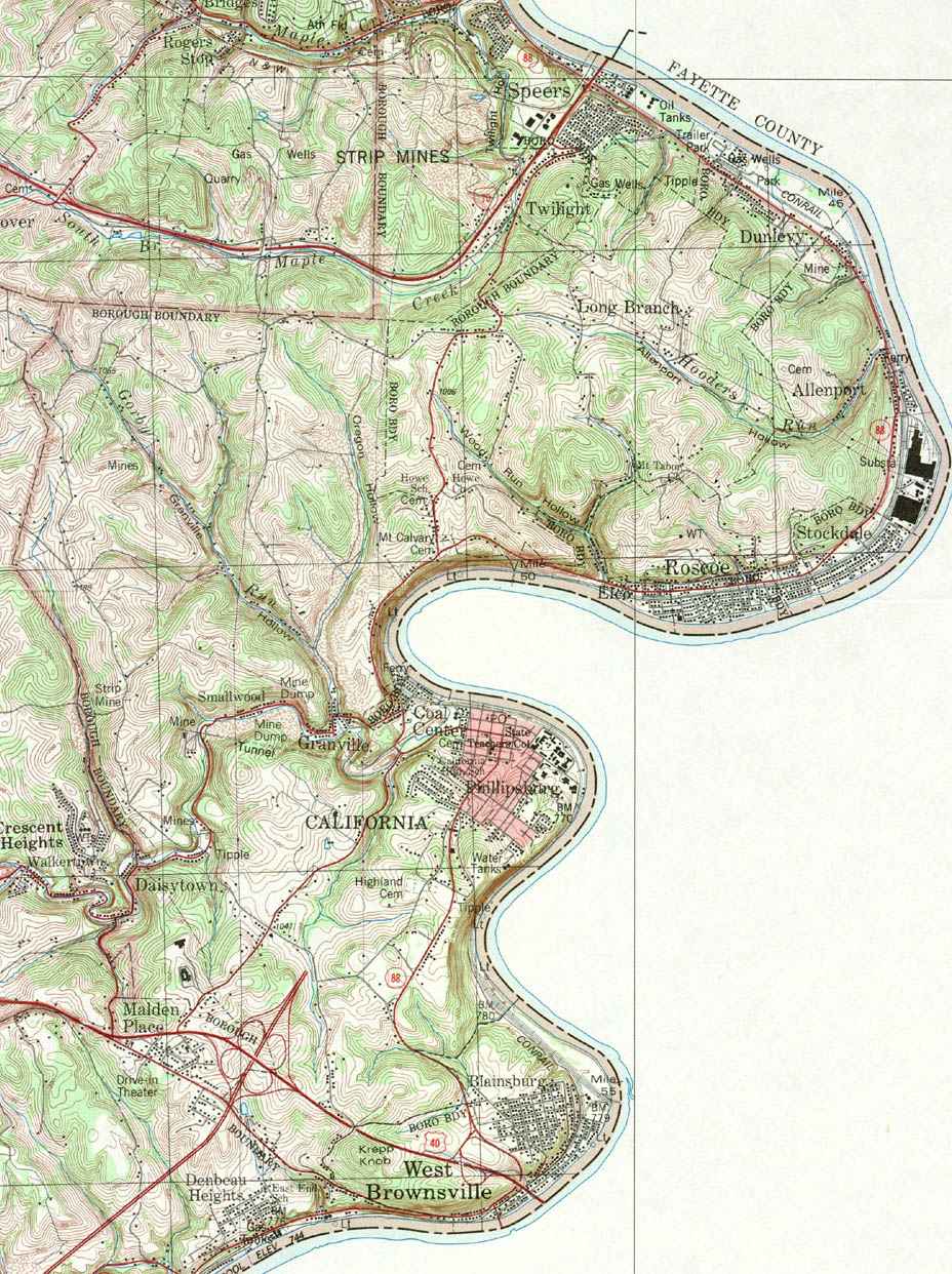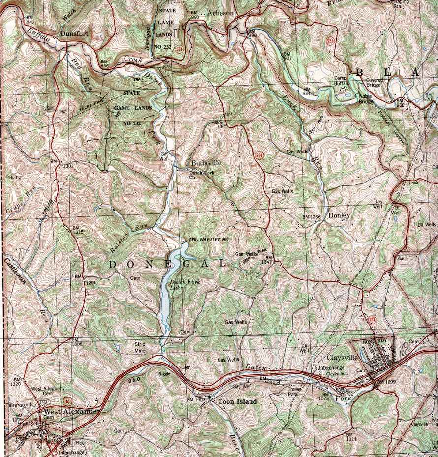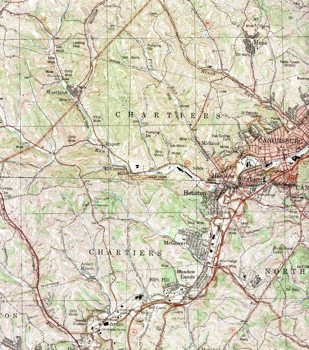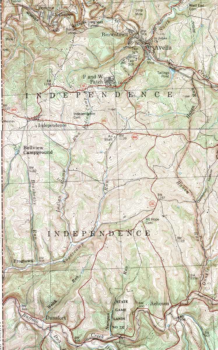 Image Map: Click on the map or on the name of the township or borough shown below. The township maps are cropped from a 1/50,000 US Geological Survey Topographical Map of Washington County dated 1982. The 1/24,000 maps which are the basis of the county map are dated from 1953 to 1964. The adjacent counties shown on the image map are links to their USGS maps. County Genealogy Sites: Link to Pennsylvania county USGenWeb sites at the bottom of the Pennsylvania Map Index page. |