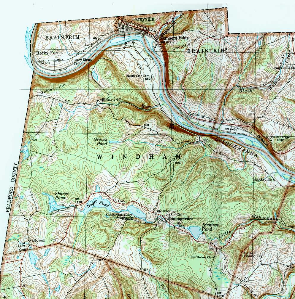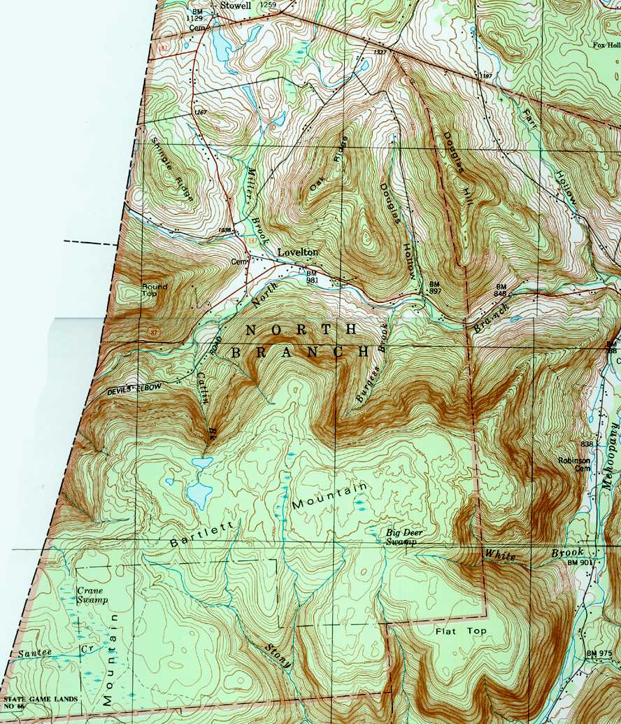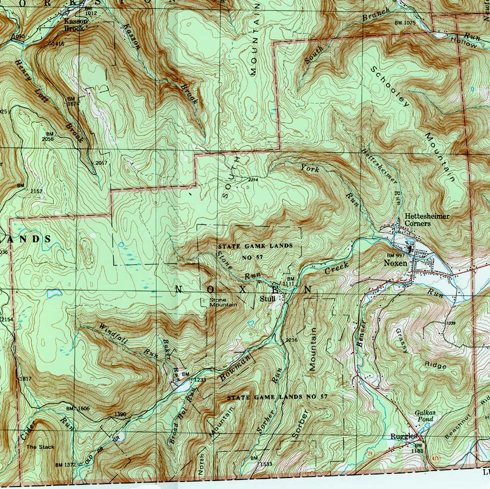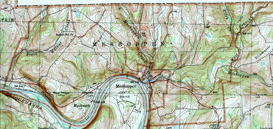 The list below shows boroughs and villages within each township; however, some townships may be combined in one map. To search for cemeteries, villages and other features visit the USGS GNIS site. Check here for information on how to order US Geological Survey Maps of Pennsylvania counties.