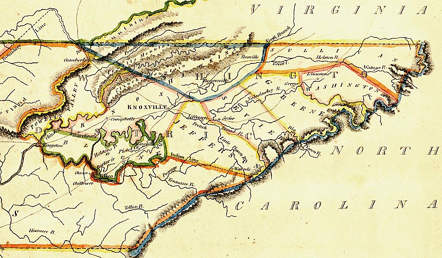 Detail of East Tennessee with pre-1796 County Lines, 189k.