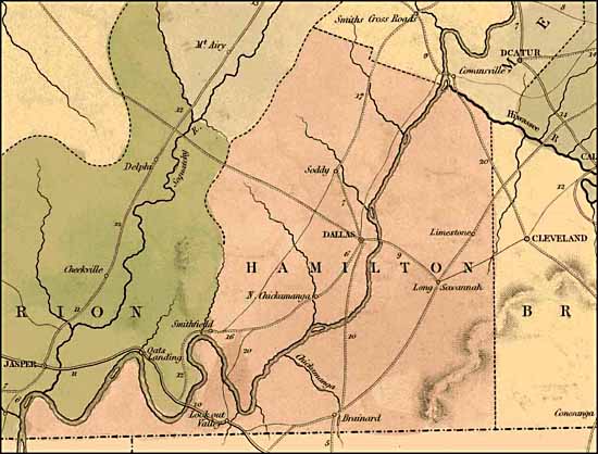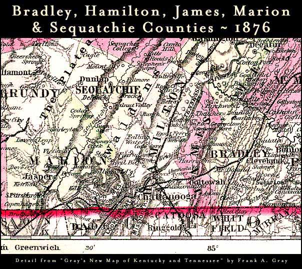 Bradley, Hamilton, James, Marion and Sequatchie Counties, 1876, 144k.