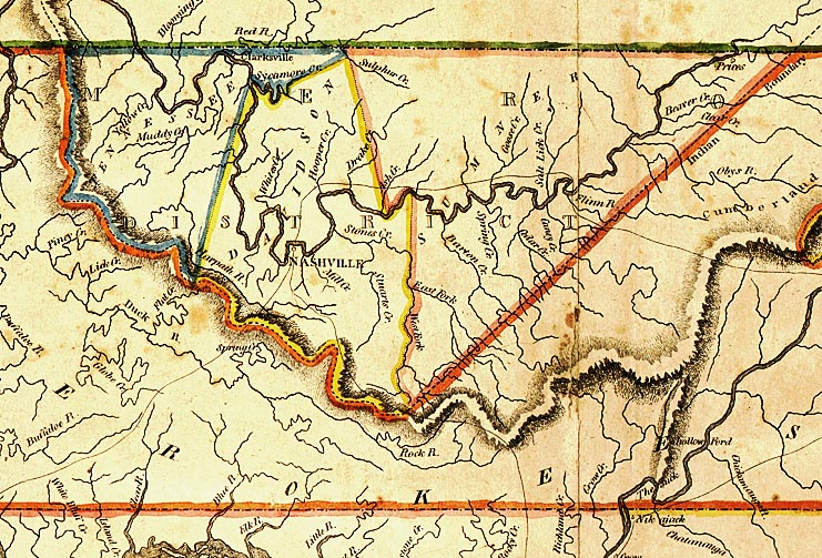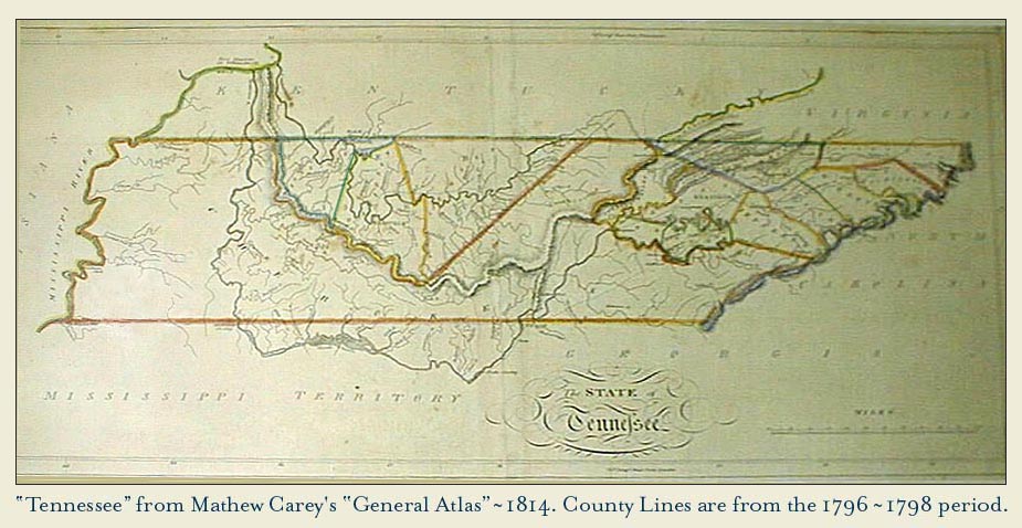 Tennessee Map with 1790's County Lines, 101k.