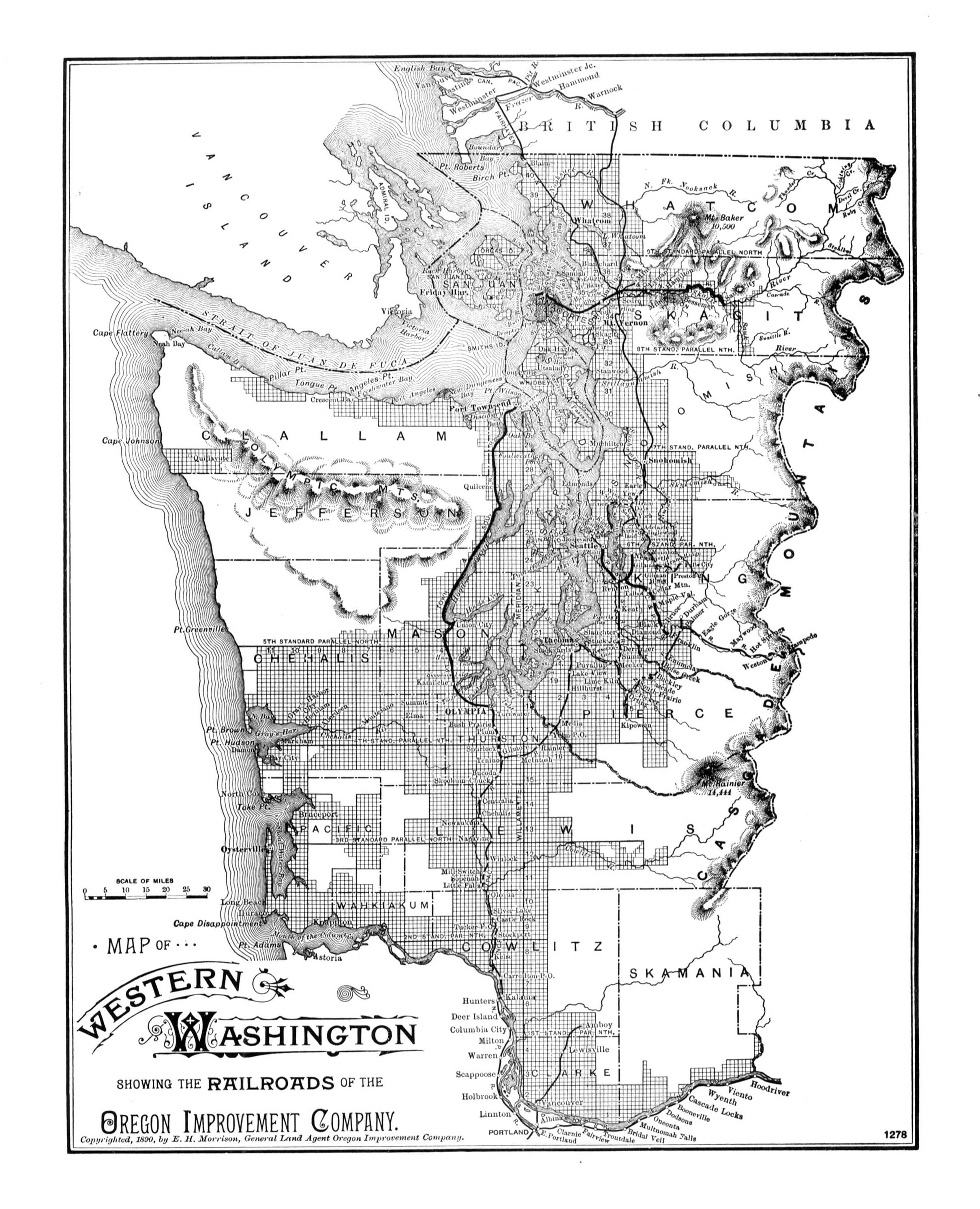 Map of Western Washington Showing the Railroads of Oregon Improvement Company, 1890, E. H. Morrison
