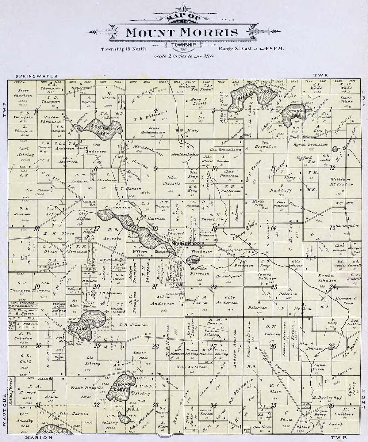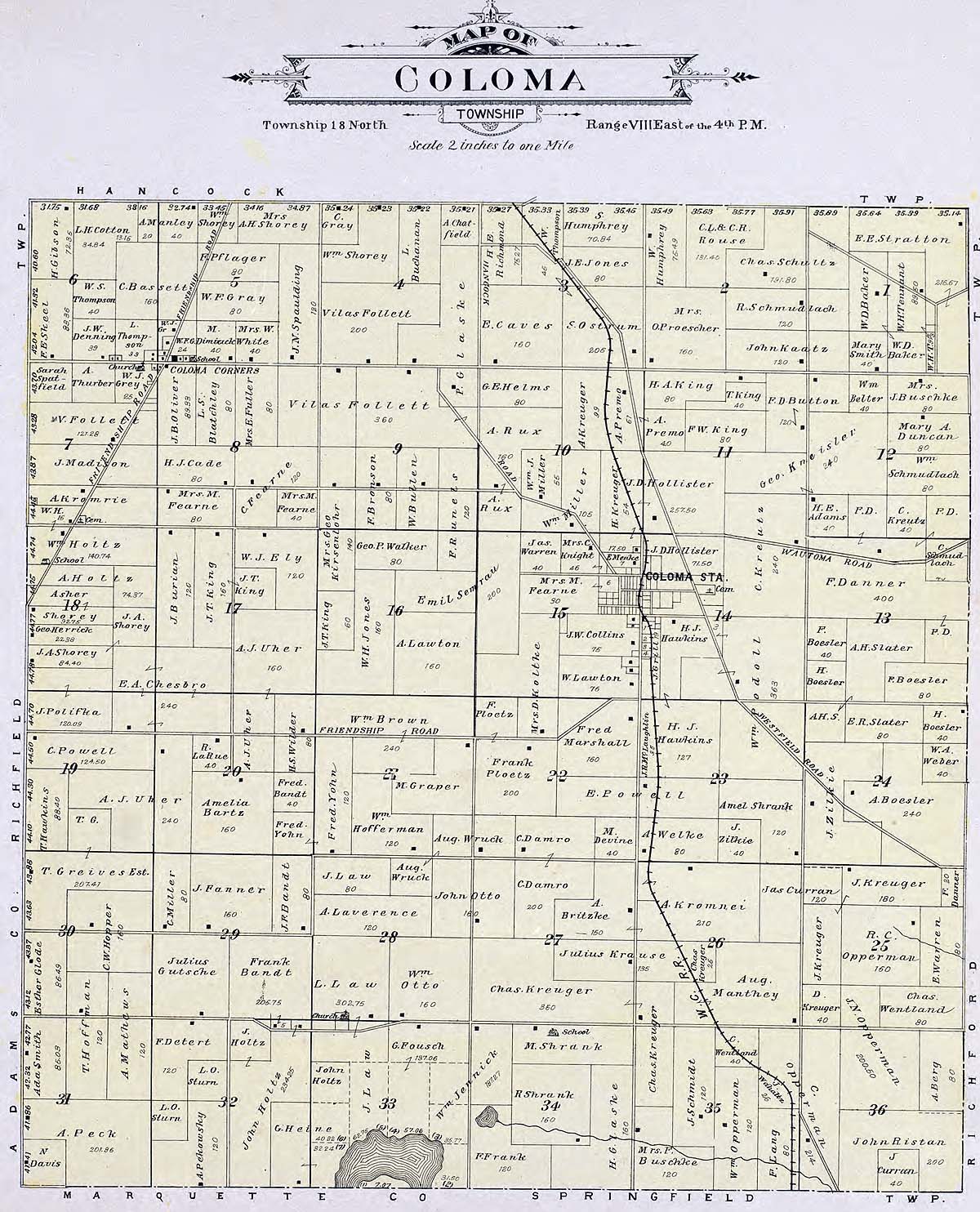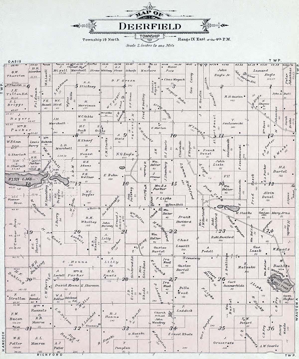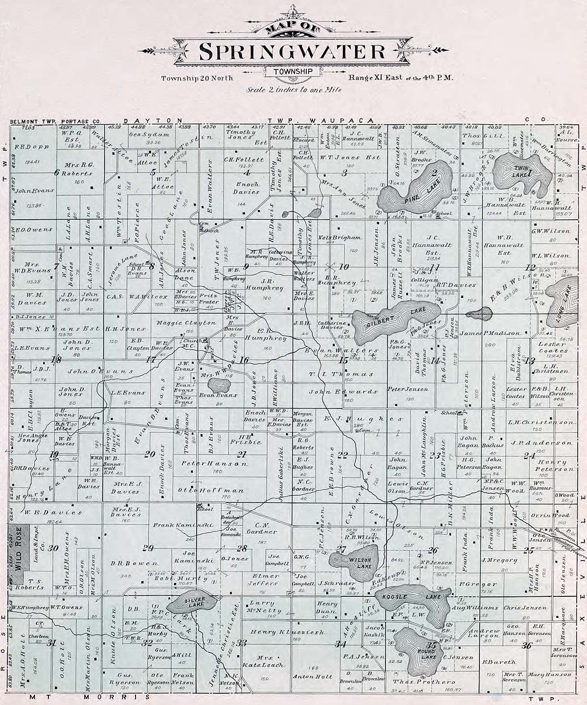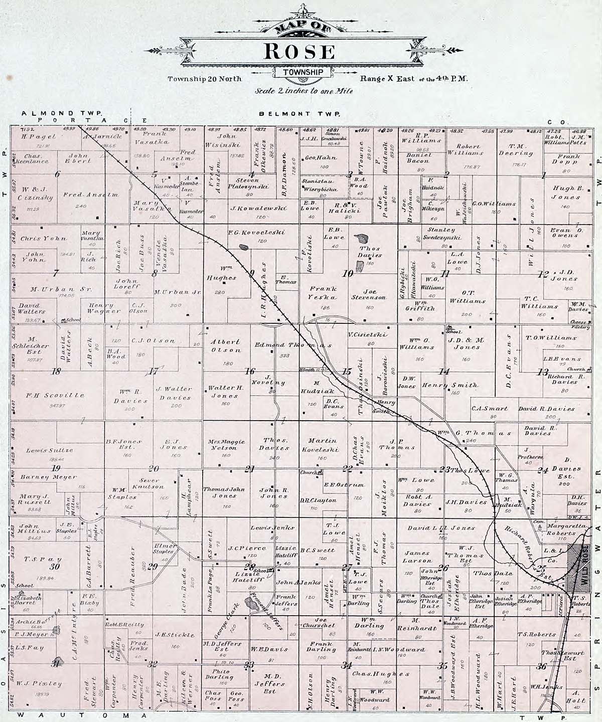 Waushara County - Atlas of Waushara County Wisconsin. Containing Maps of Villages, Cities and Townships of the County. Published by C. A. McIntyre and C. H. Terrill Wautoma, Wis. 1906 Copyrighted W. Wangersheim, Lith. & Map Printer, Chicago Submitted by Joy Fisher.