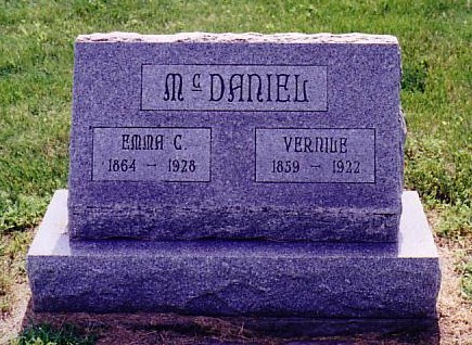 | McDaniel1.jpg | Vernile T. McDaniel, b. July 15, 1858, d. April 09, 1922 Atchison County, Missouri, buried at English Grove Cemetery, Clark Twp., Atchison County, Missouri with his wife Emma Catherine Center McDaniel, b. October 03, 1864, d. 1928 | 70K | Kathy Urban | |