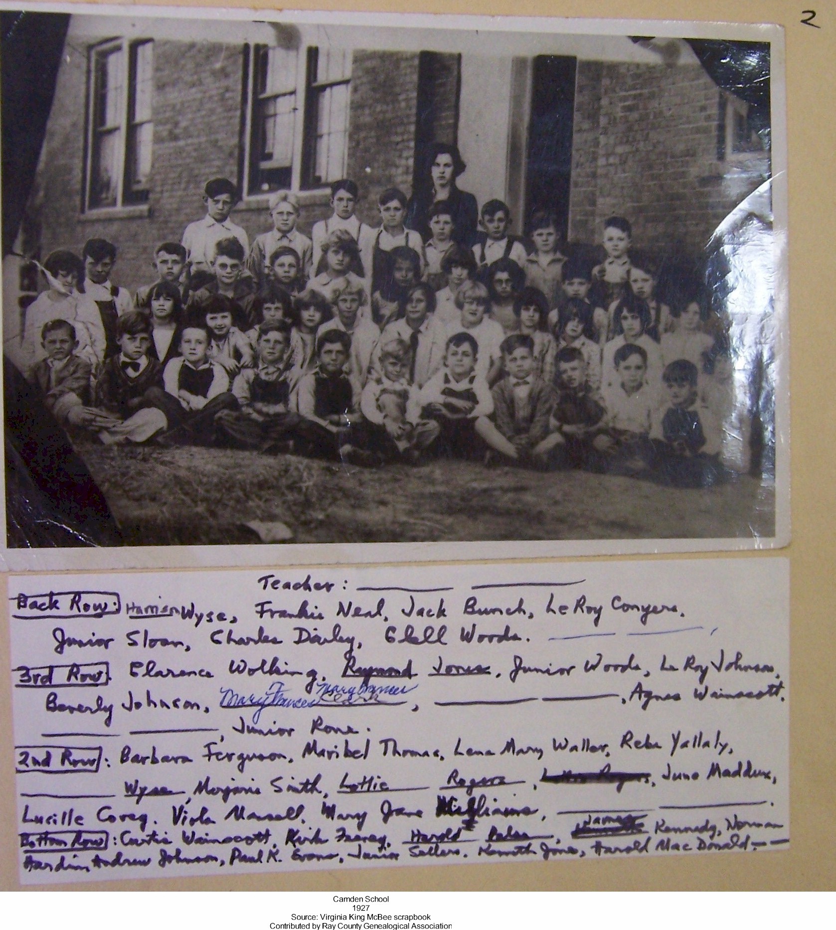 3rd Row: Clarence Wolking?, Raymond Jones, Junior Woods, LeRoy Johnson, Beverly Johnson, Mary Frances Clark, unknown , Agnes Wainscott, unknown, Junior Rone