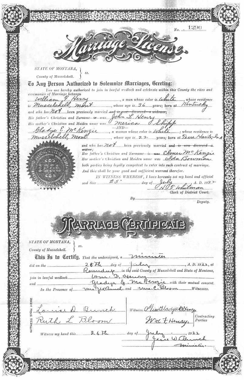 | Marriage License-Wm F. Henry (Image) | Chuck Emerson-Henry |